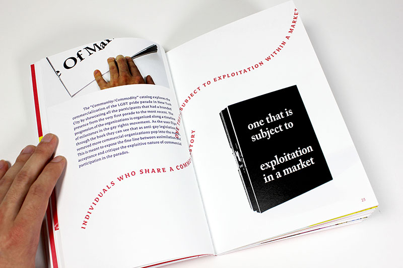 This is the design of my thesis book for Pratt Institute's MFA Communications Design program. A main goal of this thesis was to critique binary structure and perception, an objective of queer theory.