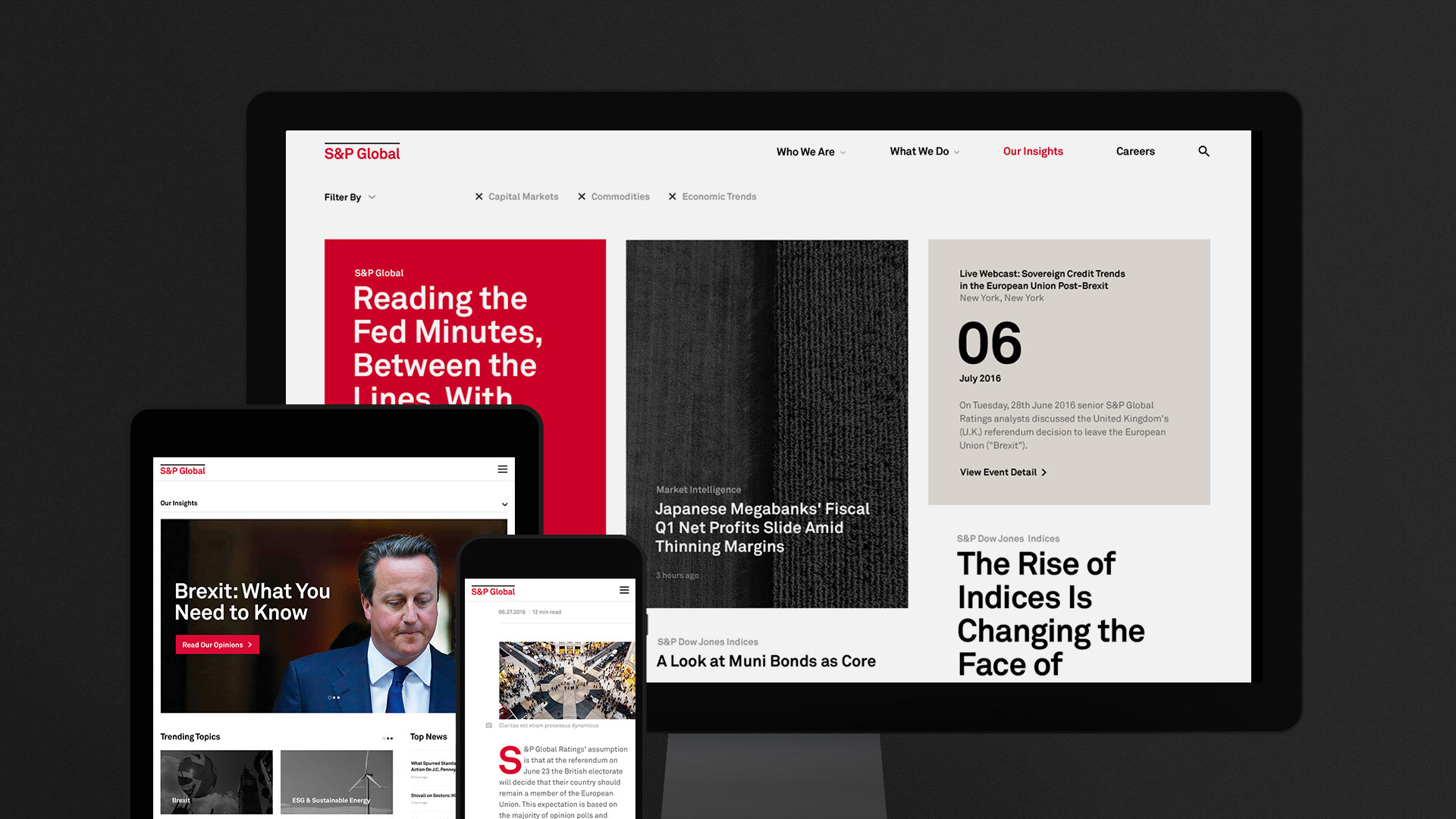 Modules were designed to be minimal, clean, and simple in functionality to appeal to the loyal user base of S&P Global's products. However, a bold and impactful look was incorporated to engage new users, and foster storytelling and wayfinding.
