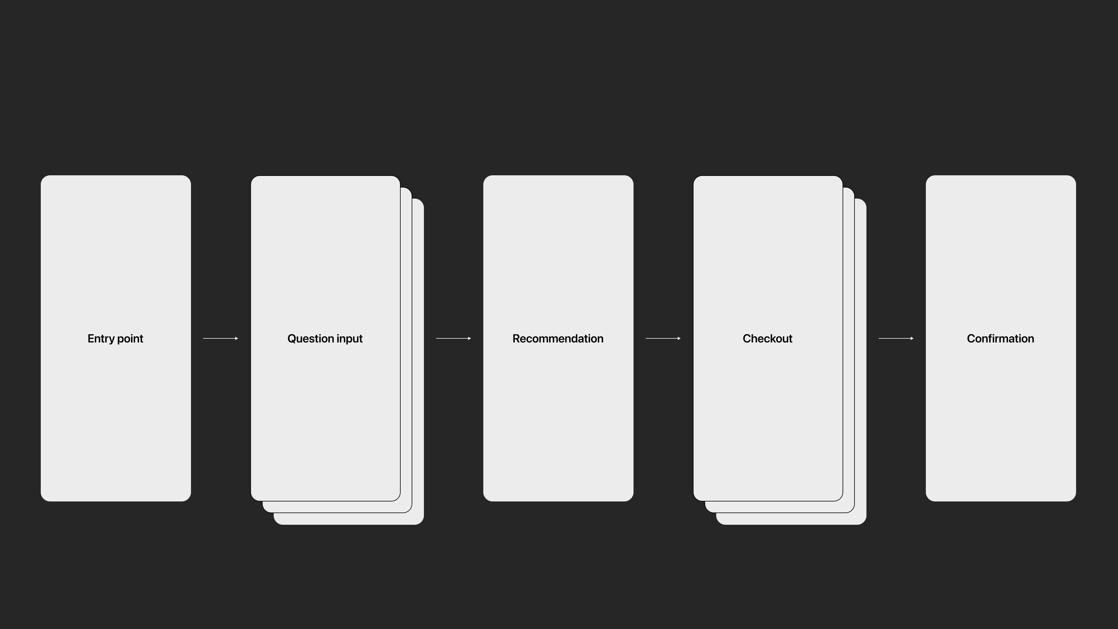 Though the flows differed in terms of content and UI, they all were united in providing users with one objective: answering questions to receive a personalized product recommendation.