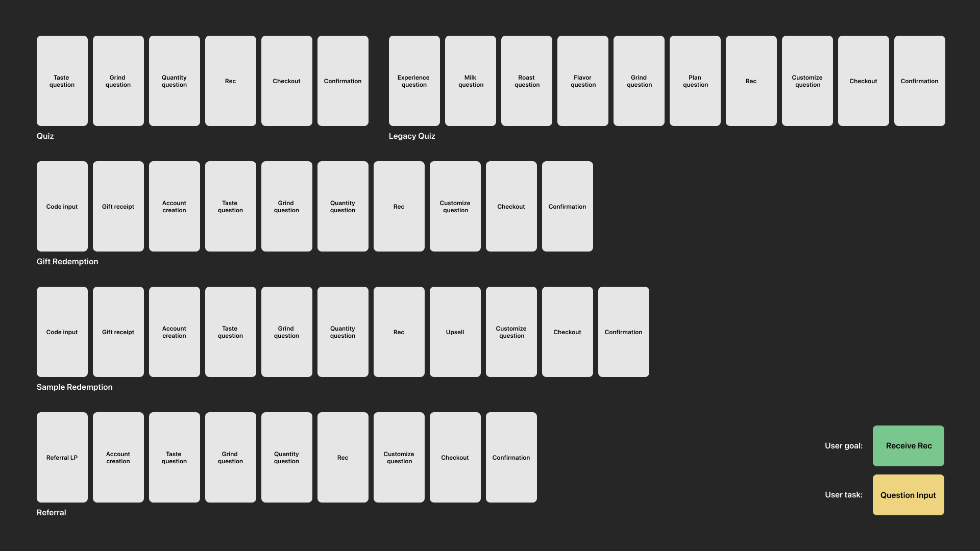 Map of the five different sign up flows, highlighting shared tasks and goals